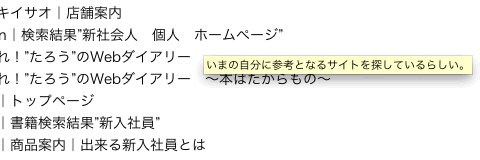 インターネットが一般化して既に十年以上。ウェブ・ブラウザの「履歴」機能には、その日、その時のあなたの精神の働きやそれを産み出す源となったあなたを取り巻いていた状況が年表のように、或いは一連の絵巻のように記されている、のかもしれません。