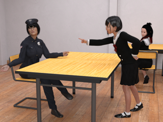 本年度の警察における職場体験では、本署警察官の監督・指示のもとで、取り調べや市街地での銃撃戦の体験を行いました。