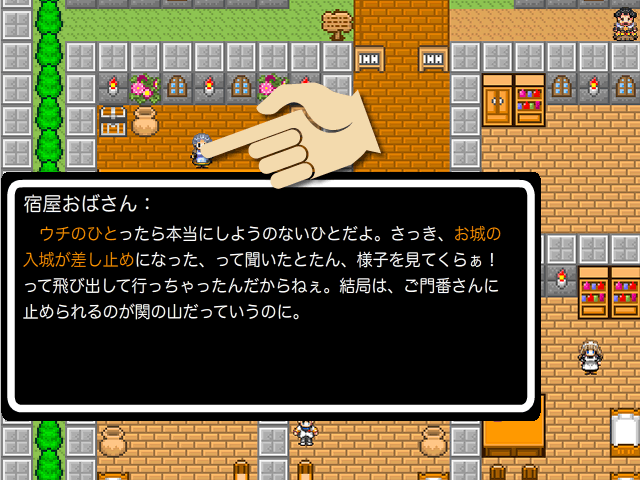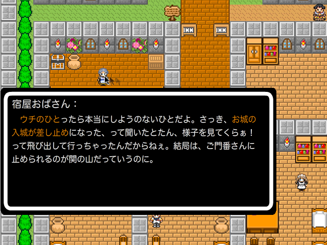 まずは城下町からスタートです。どうやら宿屋のおかみさんがなにやら不満を云っているようです。まずは聞いてあげてみてください。それではこちらからどうぞ。>START!!