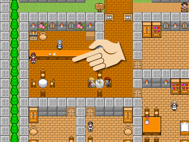人々のメッセージの中に、単語に色のついているものがあります。これは、次に探すべき人々がいる事を示しています。操作方法のところであげた画面の場合、宿屋のおばさんのメッセージから、宿屋の主人を探すことで更に物語を追う事が出来ます。色は三色あり(オレンジ、水色、ピンク)それぞれ別の物語になっています。それぞれの物語の最後にはムービーが用意されています。